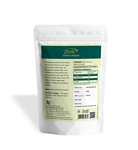 Zevic Natural Sugar Low Carb 75% Less Calories (Sulphur Free) 400 gm | No Dextrose | No Maltodextrin | Tasty & Healthy