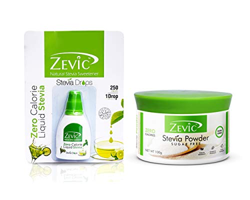 Zevic Stevia liquid is 100% natural and zero calorie. Stevia is a Natural Zero Calorie plant that is sweeter than sugar rich in antioxidants and chlorogenic acid required for a healthy body. Zevic Stevia Powder 100 gm has a perfect sweetness to sweeten your food & beverages taste with no after taste.