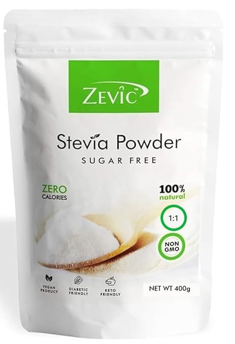 Zevic Stevia Sugar Free Powder | Zero Calories Stevia Powder | Vegan & Keto | 100% Natural Sweetener | Sugar Substitute Natural Diabetic Friendly (1 tsp is Equivalent to 1 tsp of Sugar) - 400g