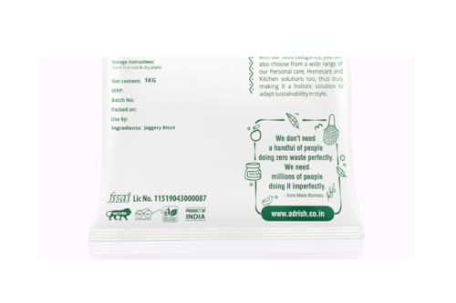 Adrish Zerowaste Organic Jaggery Block (1kg) - Handmade Jaggery Block | Healthy Sugar Substitute | Unbleached Jaggery | Preservative Free | Traditionally made | Sharkara Bellam | Vellam Gur