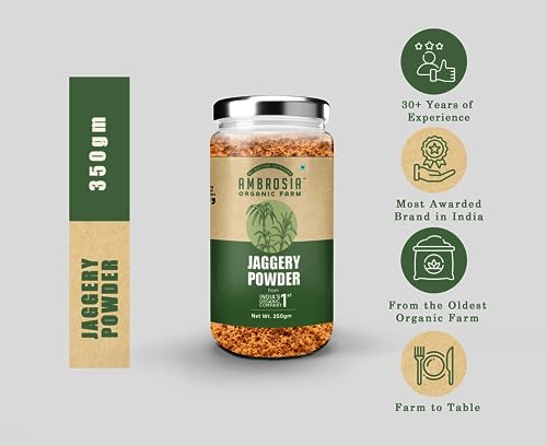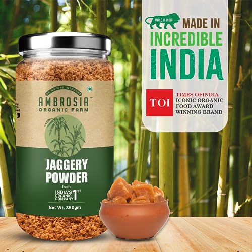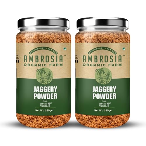 Ambrosia Organic Farm Jaggery Powder: Embrace Pure Sweetness and Enhanced Wellbeing -Gud Everyday Use Natural Nutrient-rich and the Ultimate Healthy Choice| Must Have Grocery Item. 350g (Pack of 2)
