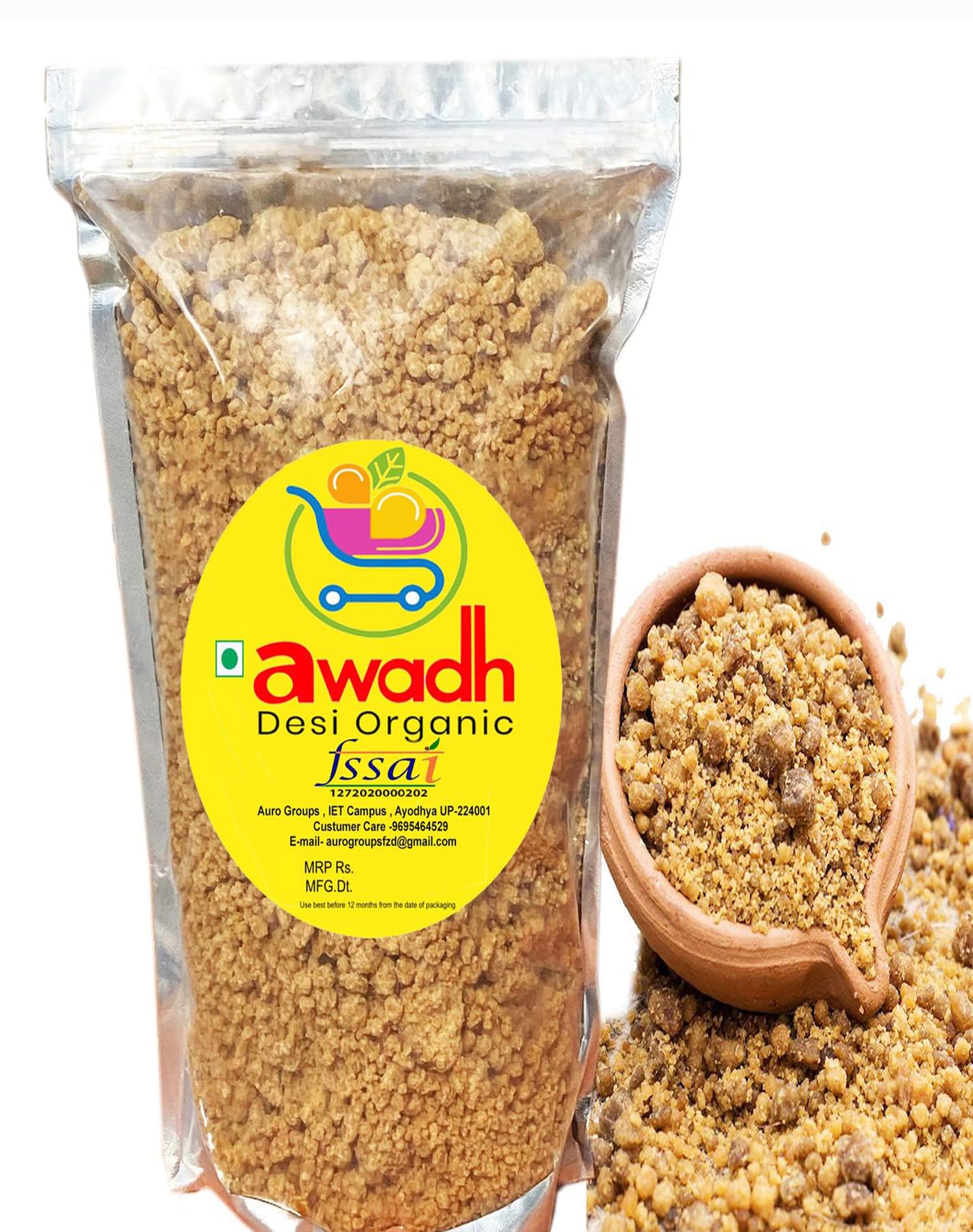 Desi Gur Gudd Hand made Jaggery Semi Powder Pure Natural No Preservatives Added Jaggery Cube Gud Jagri Organic Jaggery Granules in Zipper Pouch for extra freshness Bellam Nattu Sakkarai (400)