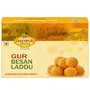 Gur Besan Laddu with Desi Ghee INGREDIENTS : Jaggery Powder (34.91%) Chickpea Flour (20.92%) Clarified Butter Cashew Nuts Split Bengal Gram (3.36%) Gum Acacia Cardamom Powder. Allergen Information: Contains wheat milk and nuts. Manufactured in a facility that processes peanut soy and sesame. Gur Panjiri Laddoo also referred to as Dabra is a super-food is prepared with ghee gur wheat flour semolina and loaded with chock-full of healthy nuts. It is a tasty Pakistani/ North Indian postpartum healing and lactation food that is perfect for providing nourishment and energy to new moms. Since panjeeri is considered a hot' or warming food it's also eaten during winter to replenish and strengthen the body. A longstanding heirloom recipe of our times this family-favorite gur mithai is like a treasure that has been passed down from generations to generations and holds so many precious memories and special moments.
