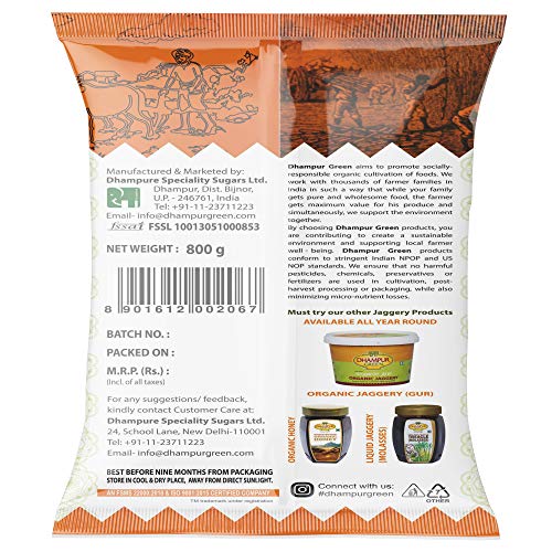 Dhampure Speciality Organic Jaggery Powder, 800G | Desi Shakkar Powder | Source Of Minerals | Healthier Substitute For White Sugar | Free From Chemical Fertilizers, Preservatives | Crushed Granular | Nutrient Rich Organic Gud Powder