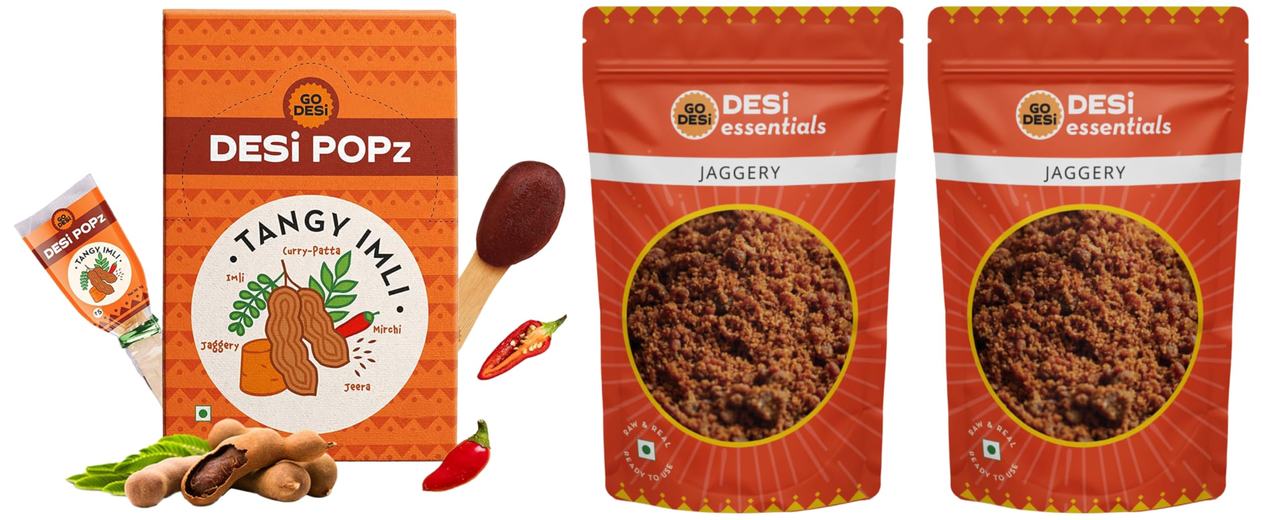 GO DESi Popz Imli Pop 50 Pieces 400 g & Jaggery Powder 1 Kg (2 x 500 g) Combo