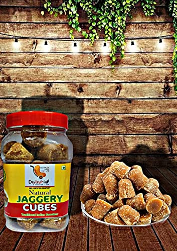 Dry Fruit Hub Jaggery Cubes 500g [Pure Natural No Added] Jaggery Cube Gud Jaggery "Jaggery" a sweetness symbol of our great Indian tradition. Dry Fruit Hub has reinvented this nutritionally rich traditional food "Jaggery" scientifically and culturally. Manufactured with blend of traditional and scientific process which meets all national and international standards. It is an excellent source of iron and hence it helps prevent iron deficiency and improves the hemoglobin levels in the . You can add jaggery to tea or coffee breakfast cereal sambhar rasam and dal. Replace refined white with jaggery while preparing some Indian sweets such as kheer or payasam. Endowed with quality parameters like Free from Chemical additives. value conserved. Hygienically processed. Organic jaggery Jaggery Cubes organic Jaggery cubes jaggery cubes
