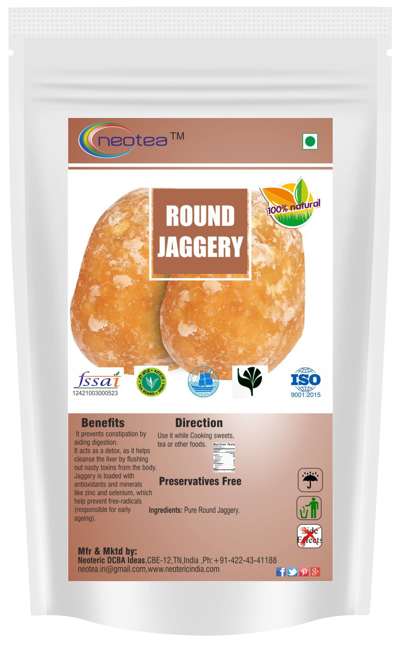 • Pure & Natural Sweetener: Neotea Round Jaggery is made from pure sugarcane juice offering a natural and unrefined alternative to regular sugar.
