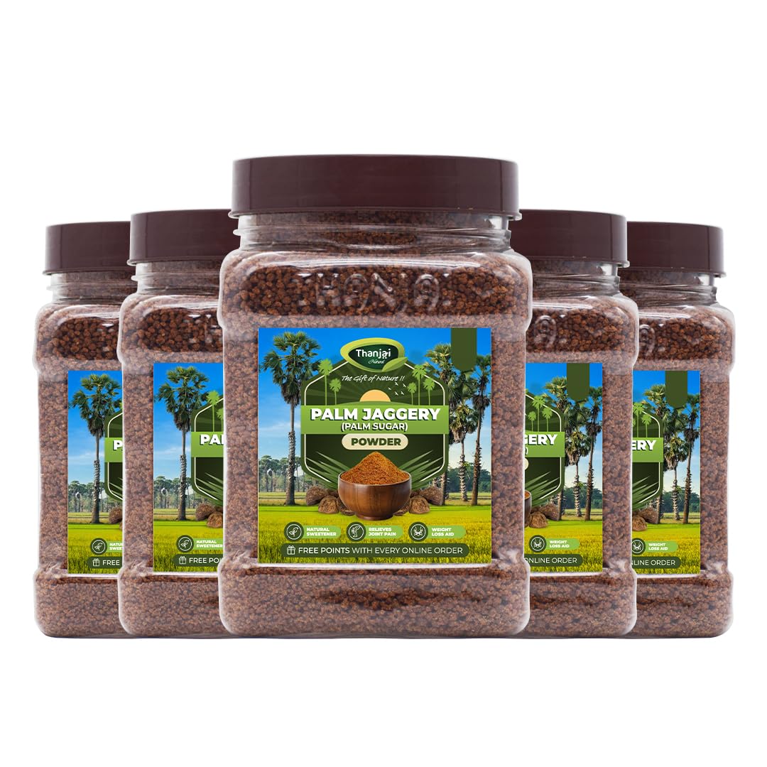 Thanjai Natural Palm Sugar | Palm Jaggery Powder (180g X 5) 900g Jar 100% Pure Natural and Unrefined Traditional Method Made