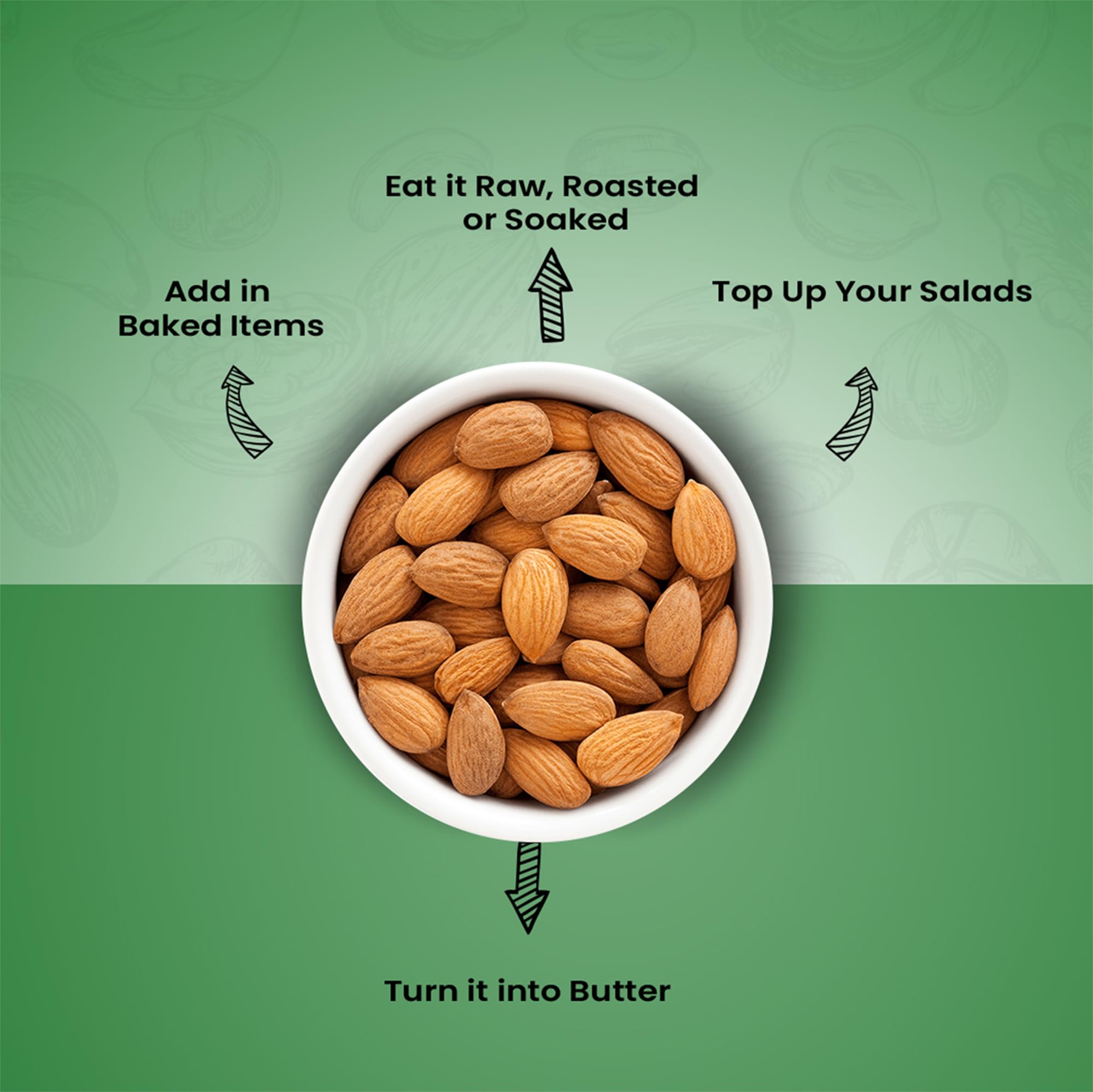 • 100% PURE: Handpicked crunchy and wholesome raw almonds sourced from the best farms in California.