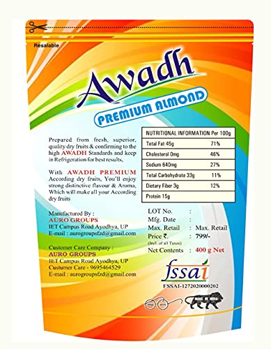 Premium quality nuts and dry fruits. almonds are vacuum packaged to retain the freshness taste and texture ensuring premium quality products in your hands. All nuts and dry fruits are hygienically packed in a facility meeting food safety standards.400GMS