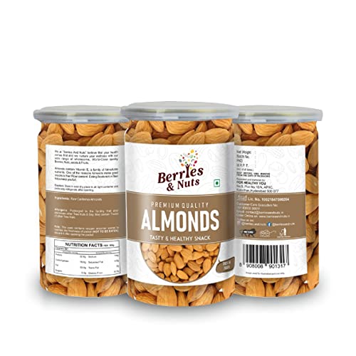 Berries And Nuts Premium California Almond Kernels | Badam, American Badam, California Almonds | 200 Grams | 1 Bottle of 200 Grams