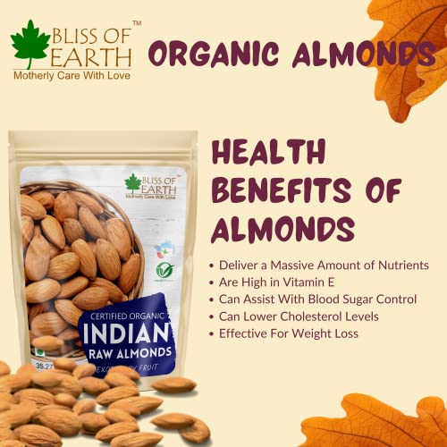 Bliss of Earth 200gm Organic Almonds Badam Dry fruits Crunchy & Tasty High in fiber, Immunity Booster Your Daily Diet Super Snack