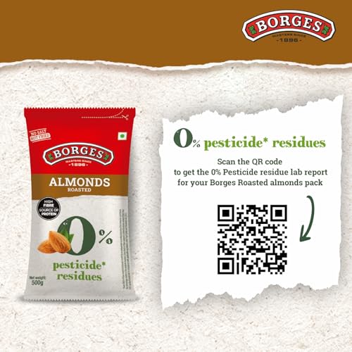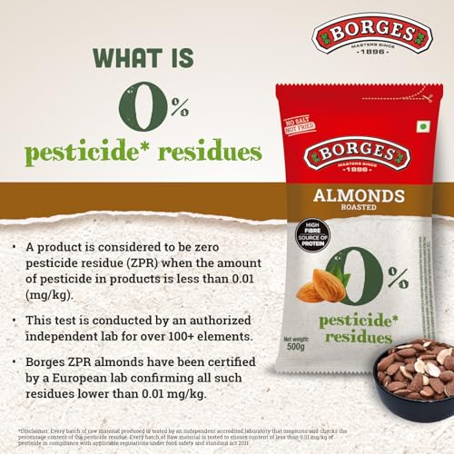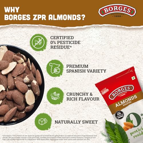Borges ZPR Almonds - Roasted with Skin 500 gm | Zero Pesticide |Premium Spanish Variety | Crunchy & Rich Flavour