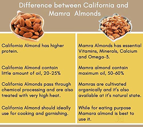 NatureVit Original Mamra Almonds [Premium Grade-AAA Quality & Bold Size] Deliciously Crisp Extremely rich in nutrition and an exotic nut. Mamra is o richer in sugar content than the other types of Almonds and that is why it is considered as a potent energy snack. The thing that actually sets aside the Mamra Almond frthe Californians and Gurbandis is the method of production. Mamra Almonds are cultivated organically without using chemic. You typically buy these almonds in their almost natural state. Delicious Crisp Bold Mamra Almonds - Agricultural produce of Afghanistan. Ce's in Jar & Stand-Up Zipper Pouch.