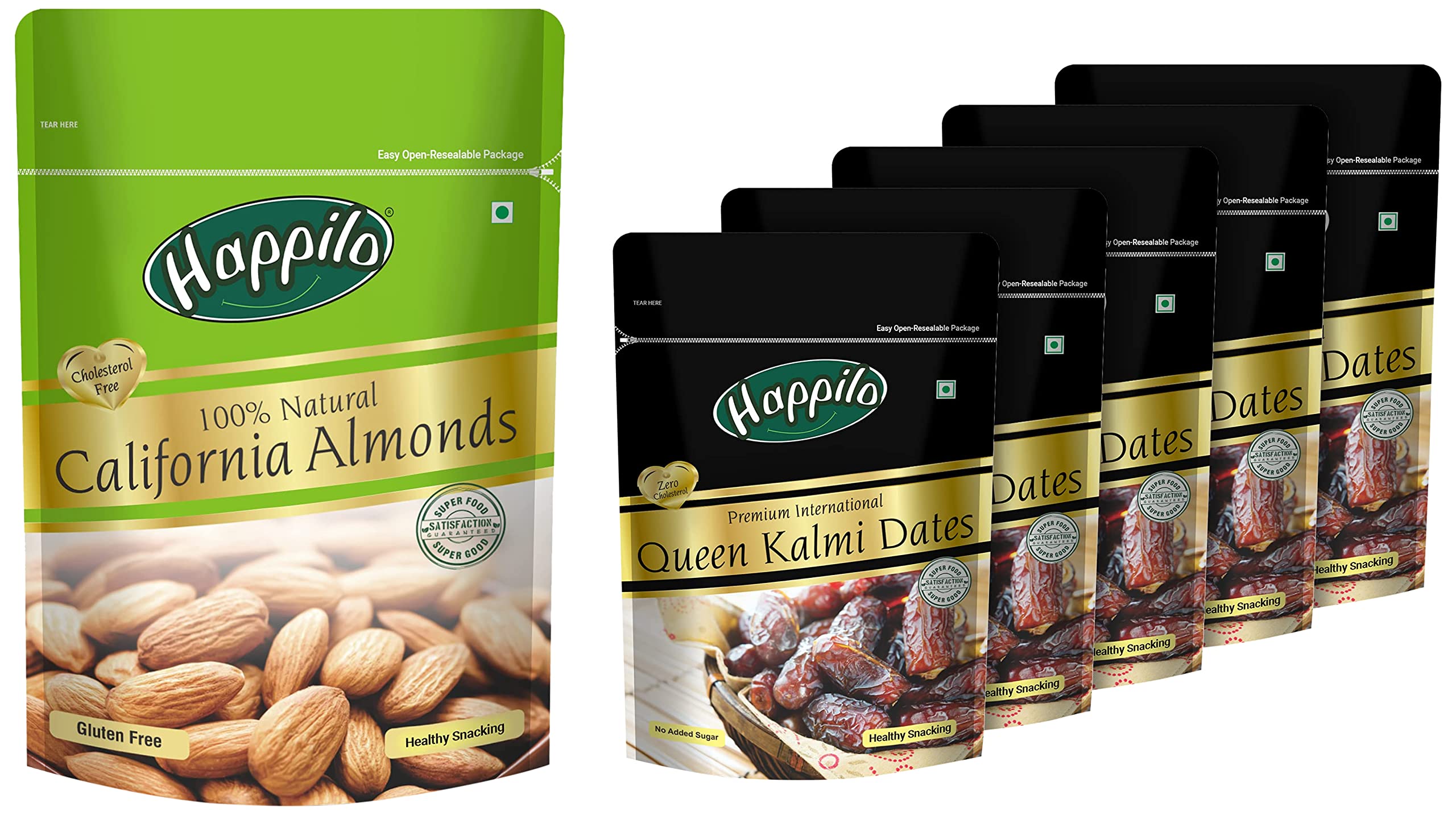 Happilo 100% Natural Premium Californian Almonds Value Pack PouchDried500gHappilo Has Travelled The World To Get The Finest Gourmet Dry Fruits Perfect For A Healthy Lifestyle.Time To Be Happy Lovely & Healthy.High Protein Dietary Fiber No Gluten No Gmo Zero Transfat Zero Cholesterol 100% Real Nuts- Good For An Active Lifestyle Lowers Harmful Cholesterol Levels Rich Source Of Omega-3 Anti Oxidants & Vitamins Calcium Iron & Magnesium. Shelf Life : 12 MonthsHappilo Premium International Queen Kalmi Dates 200g (Pack of 5)Happilo has travelled the world to get the finest gourmet dry fruits dried fruits nuts berries and dates 100 percent natural and authentic. Indulge into the gourmet and grocery world of Happilo with awesome natural nuts and dry fruits along with the unique dry fruit mixes fusions and flavoured dry fruits healthy seeds and dried berries specially crafted for your taste and health.