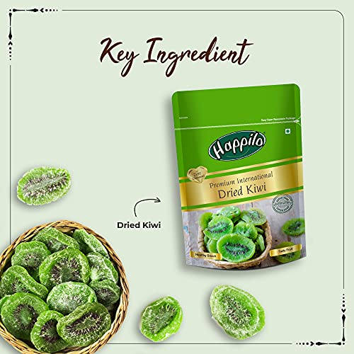 Happilo Premium International Dried Kiwi Slices 200g Candied Dry Fruit Naturally Sweet and DehydratedLike kiwi eh? We do too and thought it would be awesome to get dried kiwi. And awesome it is! Our dried kiwi has a delicious sweet and slightly tangy taste. These dried kiwi slices have a vibrant green colour that is so much fun to look at but even better to eat. Dried kiwi is a natural digestive aid packed with enzymes fibre and potassium to keep electrolytes in check. They are also a good source of protective antioxidants and immunity-boosting vitamins. Enjoy them as a healthy snack or dip them in chocolate for a real treat! A Brand that is committed to improving the quality of your life Happilo provides food that is packed with the goodness of nature and taste that will keep you wanting for more. With a range of food items across categories like Dry fruits Nuts Seeds Berries Nut Mixes and other healthy items each of our products is not only 100% Natural but is also made of 100% Whole Grains. While we stand strongly for Health wherein our products have a clear functional benefit we believe that Taste is the most important element when it comes to Snacks. We strive to bring the best range of snacks to you. Healthy Snacking with Happilo Premium Dry Fruits Nuts Seeds Berries & Nut mixes.Happilo 100% Natural Premium California Almonds 200 g Dried | Badam Giri | High in Fiber & Boost Immunity | Real Nuts | Gluten Free & Zero CholesterolPerfect for a health snack. Time to be happy lovely & healthy. Gluten free High in protein Almonds High protein dietary fiber no gluten no GMO zero transfat zero cholesterol 100% Real nuts- good for an active lifestyle Lowers harmful cholesterol levels Rich source of omega-3 anti oxidants & vitamins calcium iron & magnesium Hearts best friend improves cardiovascular system