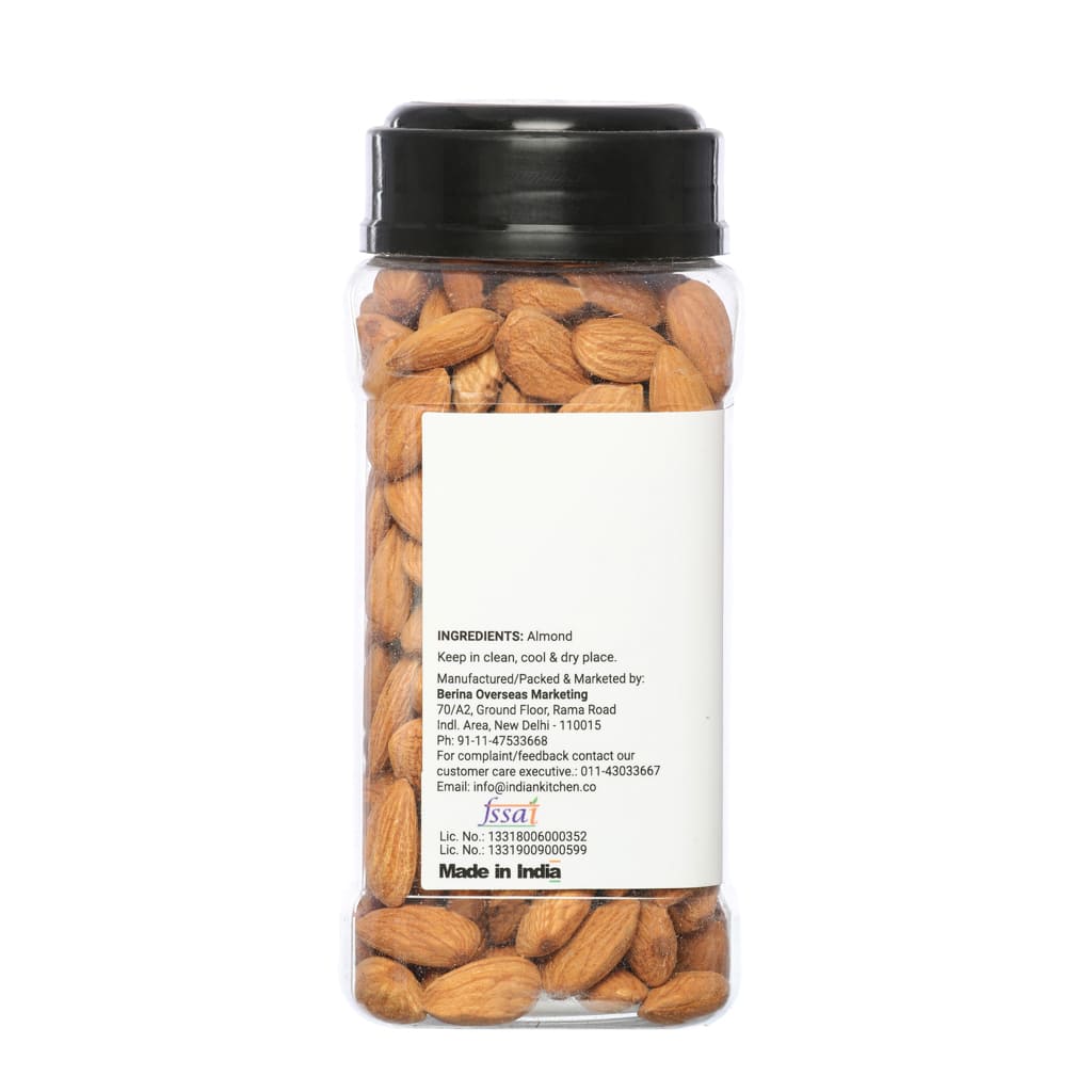 Introducing Indian Kitchen pure california almonds- the choicest selection of handpicked nuts with a promise to consistently deliver premium quality. Enjoy this 100% pure california almonds that are super crunchy, flavourful and of uniform colour and uniform size. Premium packaging keeps goodness and quality intact for long time ensuring crunch and great flavour. Almonds are naturally rich in fiber & nutrients for overall well-being.