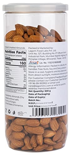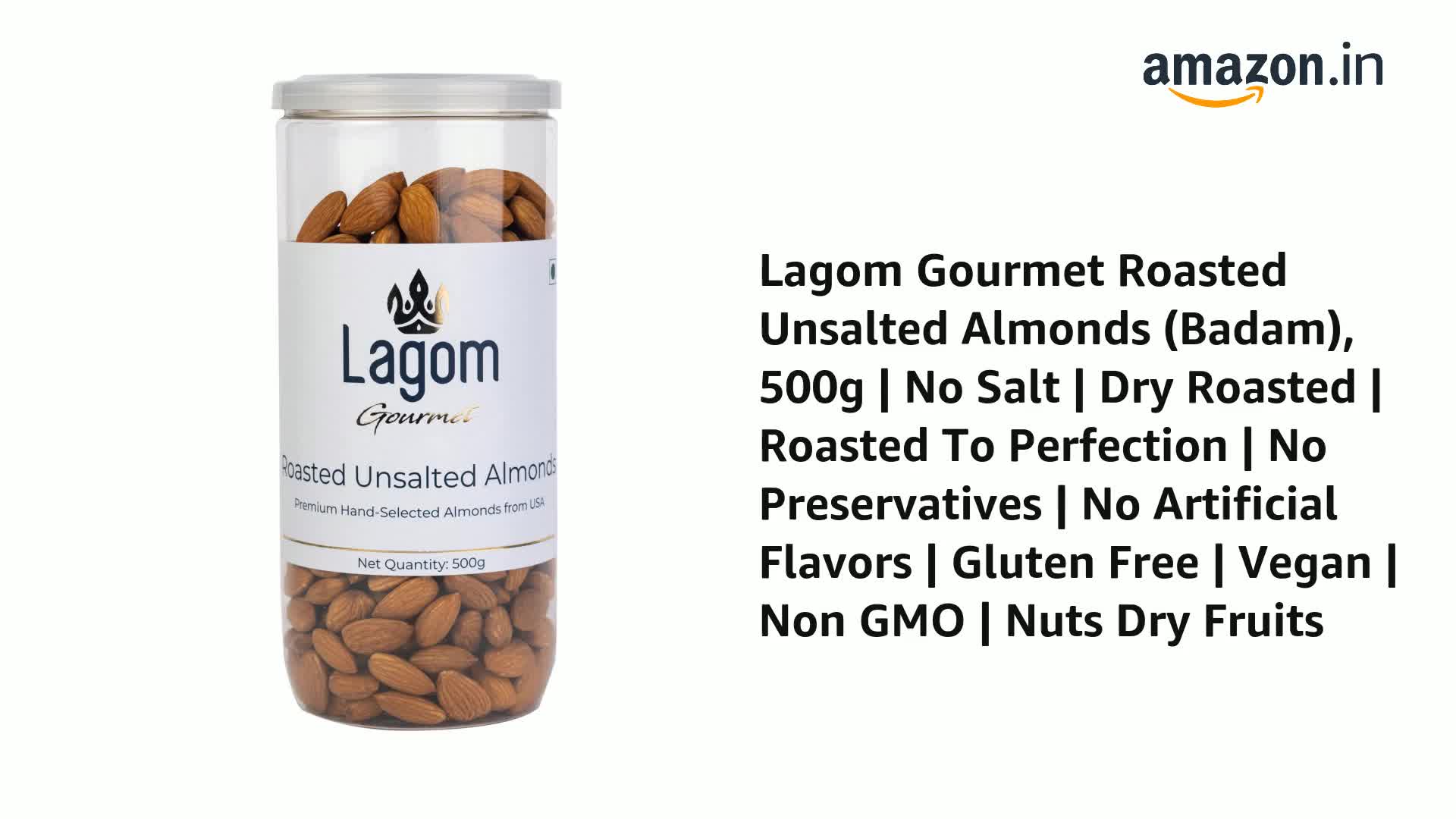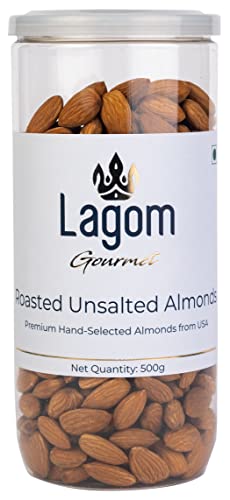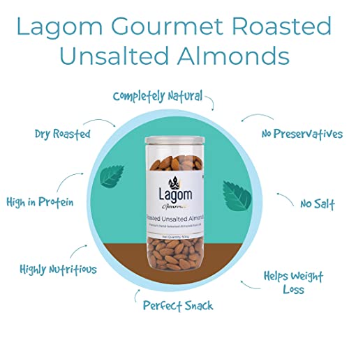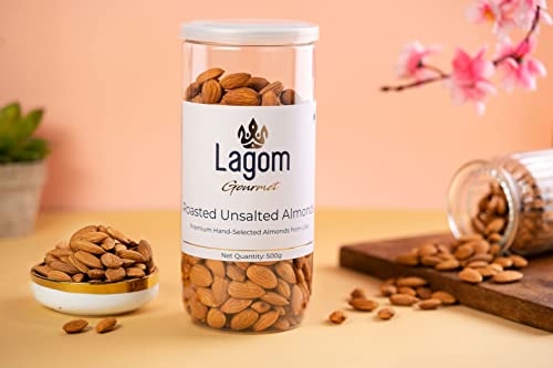 Lagom Gourmet Roasted Unsalted Almonds 500G|No Salt|Dry Roasted|No Oil Used|Roasted To Perfection|No Preservatives|No Artificial Flavors|Gluten Free|Vegan|Non Gmo|California Almonds|Unsalted Almonds