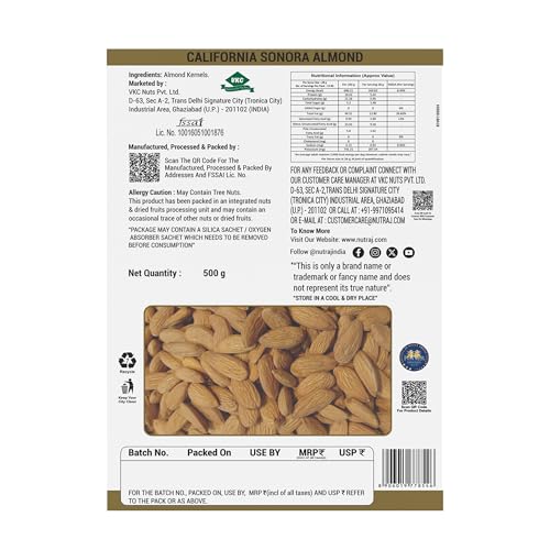 Nutraj Anmol Sonora Almonds|Badam Giri|Extra Long|Rich In Healthy Fats|Reduce Bad Cholesterol|Weight Loss - Whole