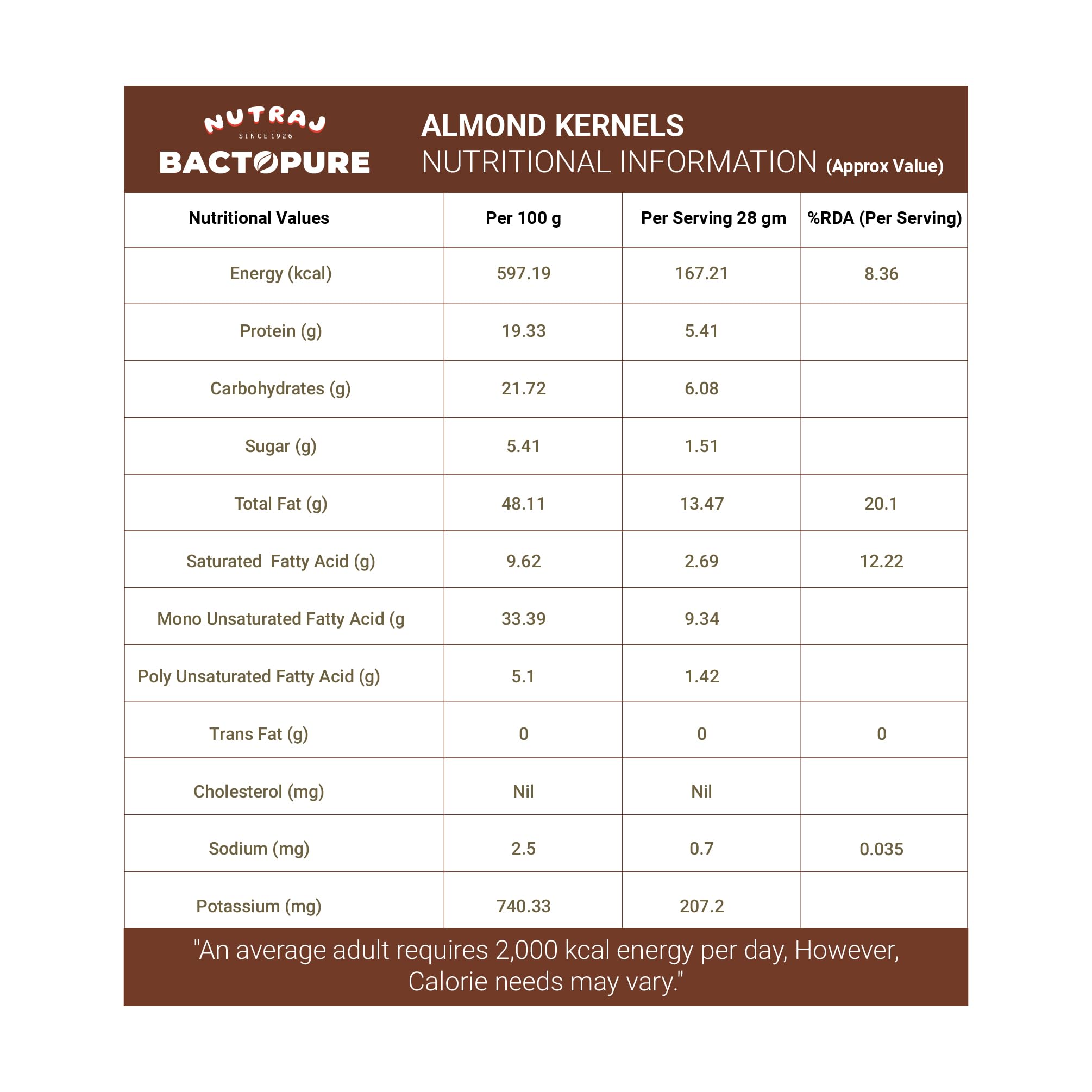 Nutraj Bactopure Almond Kernels | Pathogen Free | 100% Natural And Premium | 250 gm