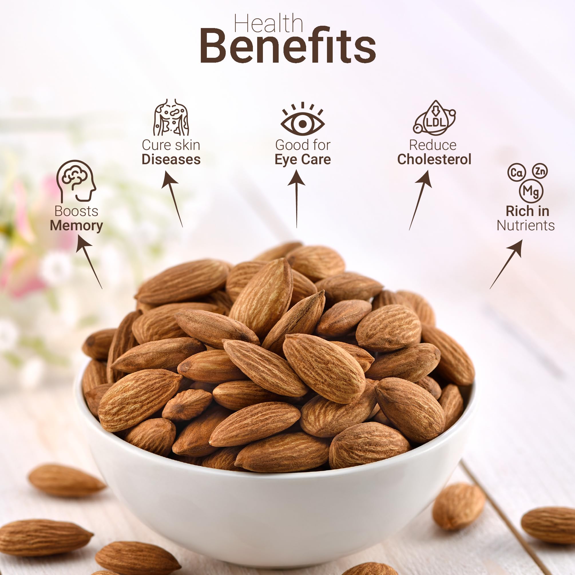 • Packed with Nutrients- In addition to the Magnesium which help curb down hypertension and maintain good heart health almonds are also rich in Calcium Zinc Copper Manganese Vitamin B & E