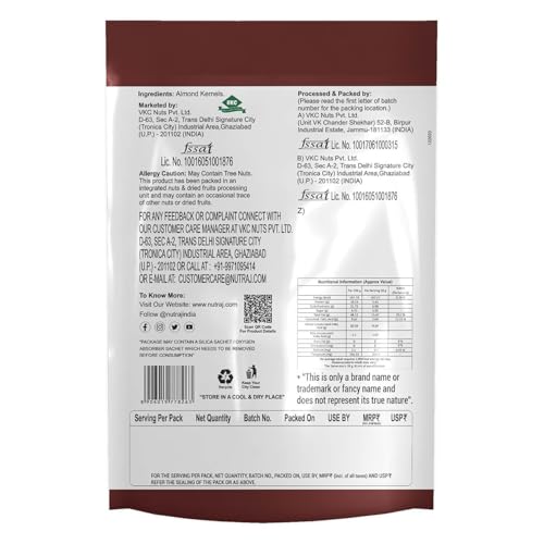 It's time to enjoy delicious almonds brimming with nutritious goodness in Nutraj Super Value California Almonds. Consisting of 100% fresh almond kernels they are sourced from California and come with a nutty crunch. They are enriched with digestible fats calcium phosphorus and copper ensuring they provide all the nutritional goodness. These almond kernels are versatile and flavourful making them a great addition to salads cereals oatmeals and trail mixes. For the best taste and nutrition grab a pack of Nutraj Super Value California almond kernels.