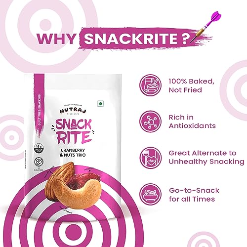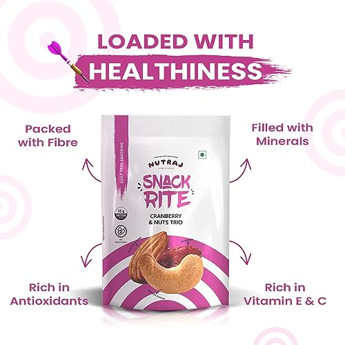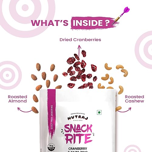 • Nutraj Snackrite Cranberry Trio is a wholesome punch of roasted and salted cashews and almonds with sliced cranberries.