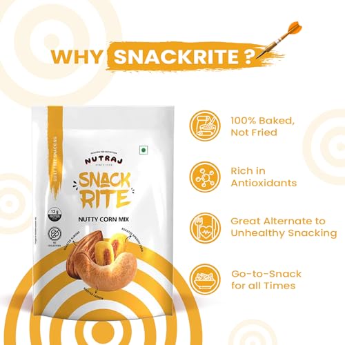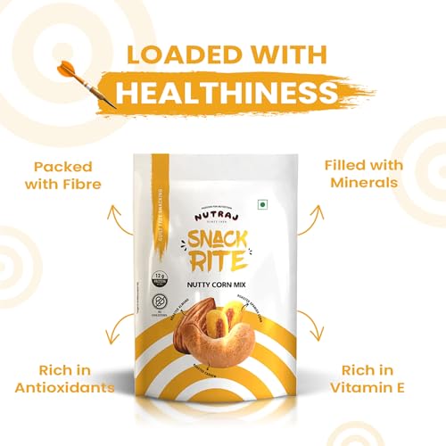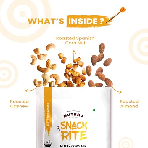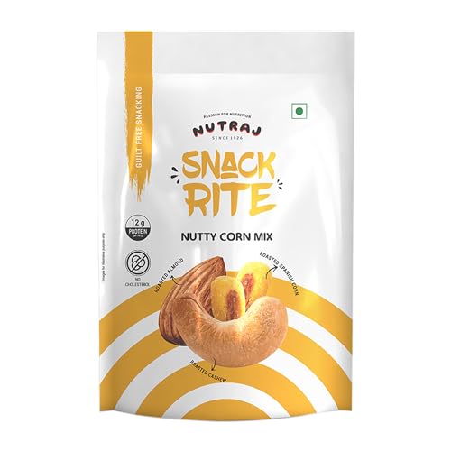 • Nutraj Snackrite Nutty Corn Mix is a wholesome punch of roasted and salted corns cashews and almonds.