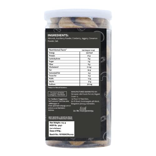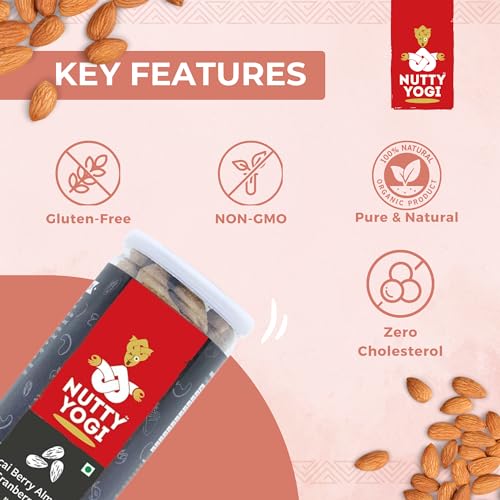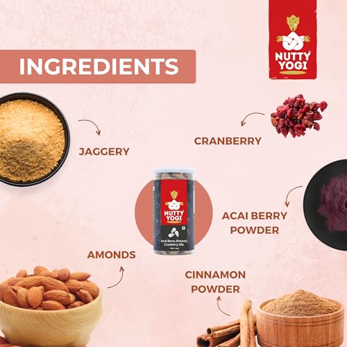 Nutty Yogi Acai Berry Almond Cranberry Mix | Fiber & Minerals | Rich in Protein | Goodness of Almonds | Excellent Source of Vitamin E | Best Brain Food | Acai Berry - 125 gm