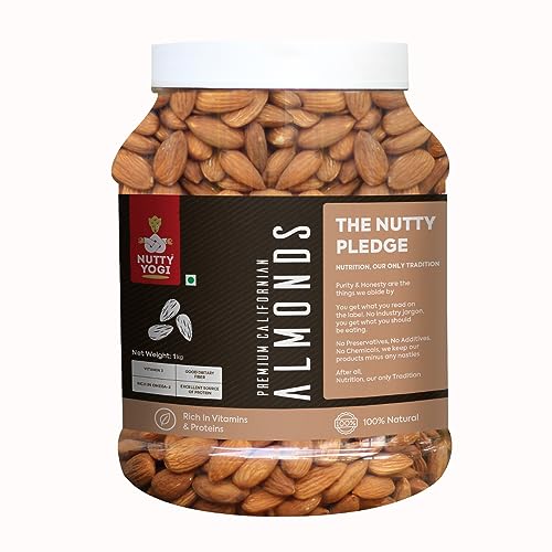 Nutty Yogi Californian Almonds - (1 KG) 100% Natural Badam | California Almond Healthy and Tasty Dry Fruits Delicious Snacks | Whole Almonds