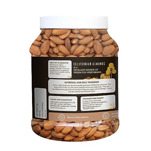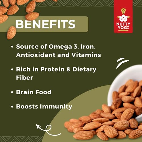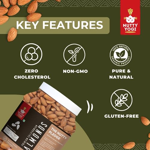 Nutty Yogi brings to you a range of premium nuts and dried fruits 100% PURE CALIFORNIA ALMONDS (Whole): Choicest selection from California handpicked nuts in every pack .