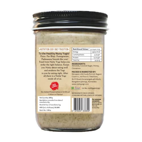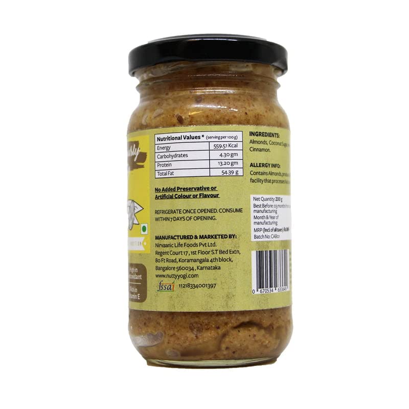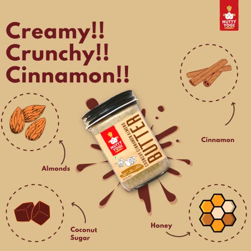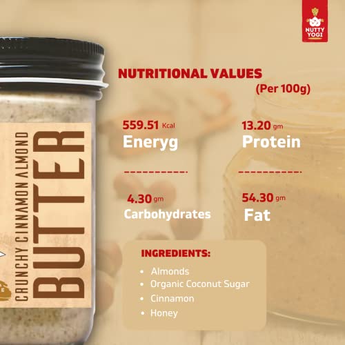 Its Crunchy Its sweet Its healthy-hearty and its super delicious. Its Nutty Yogi's Crunchy Cinnamon Almond Butter. With pieces of almonds in a otherwise smooth butter its nothing but almond goodness and melt in your mouth deliciousness. Bare it all with this almond butter we say. Purists who want nothing but nuts. Health Quotient Rich in Vitamin E and Magnesium. It is heart friendly. Controls blood pressure and maintains a good blood flow. Anti Oxidant and hence lowers cholesterol. Low GI thereby Diabetic friendly. Can be used instead of regular butter for better well being and health.