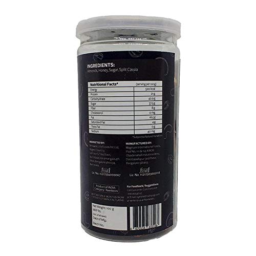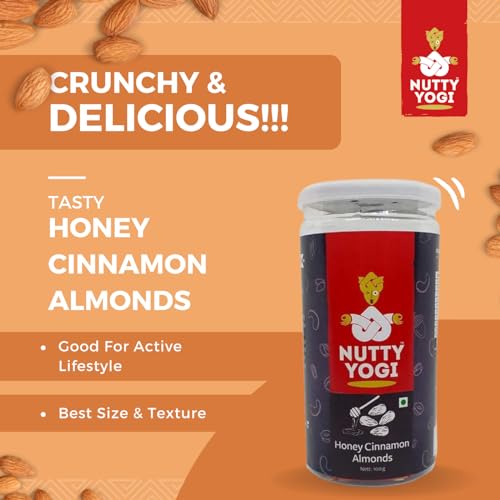 Nutty Yogi Honey Cinnamon Almonds | Healthy & Natural (Each 100 Grams - Pack of 2)