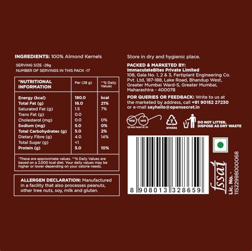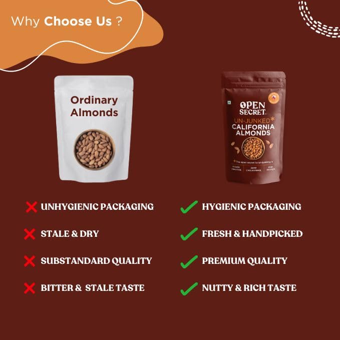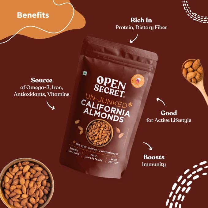 Open Secret Almonds | 200g | Dry Fruits, Badam, California, Badam Giri, Rich in Fiber, Boost Immunity, Healthy Nutritious Delights & Gluten Free (Pack of 1)