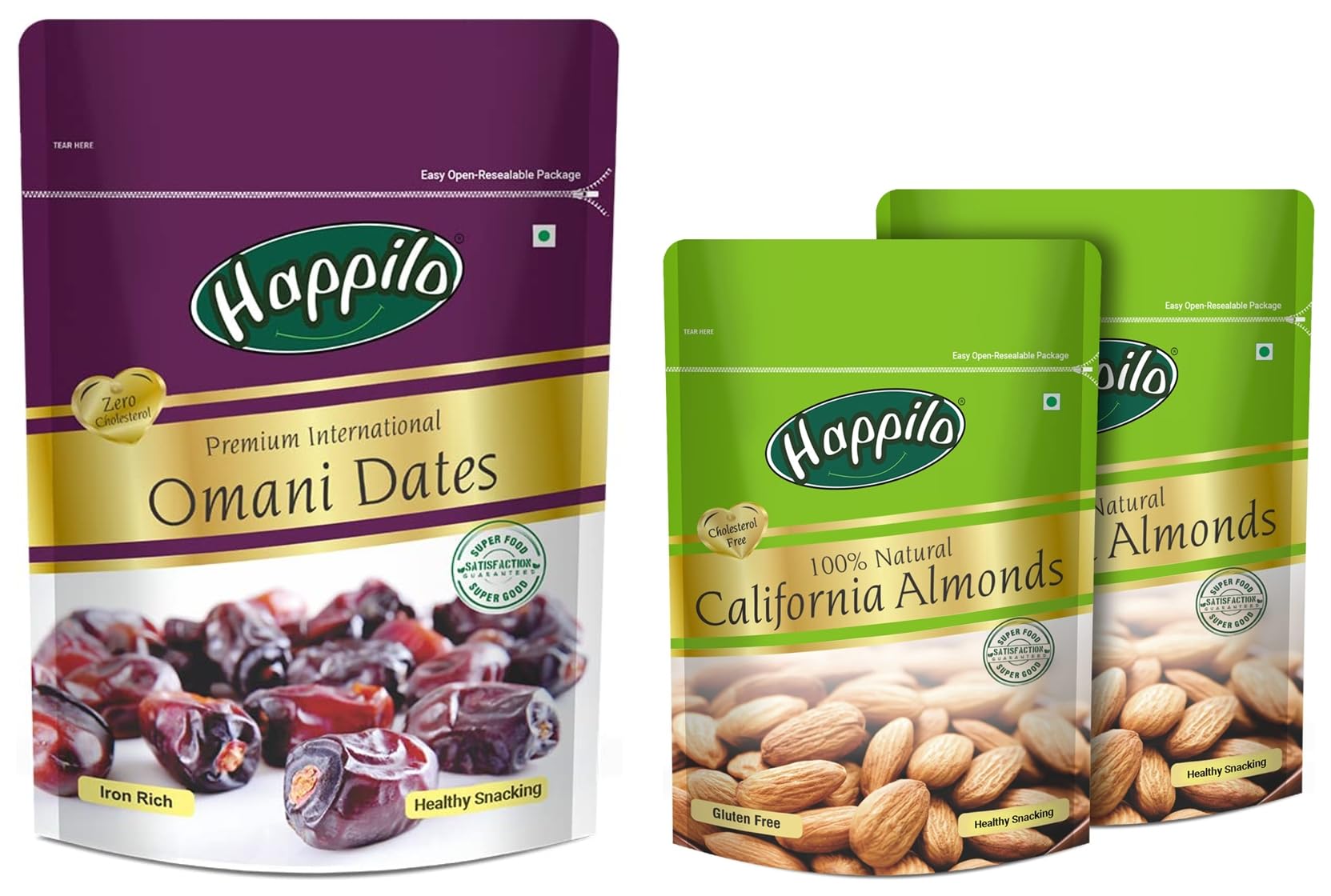 Happilo Premium International Omani Dates 250gHappily has travelled the world to get the finest gourmet dry fruits dried fruits nuts berries and dates 100 percent natural and authentic. Indulge into the gourmet and grocery world of Happily with awesome natural nuts and dry fruits along with the unique dry fruit mixes fusions and flavoured dry fruits healthy seeds and dried berries specially crafted for your taste and health. Happily dry fruit gift boxes and festive dry fruits and nuts gift pack brings health happiness and love to gift to your colleagues friends and family. We bring you the taste and health together in single pack in the finest of packing packed in an art of the state facility certified by all majors like fssai iso. Every Happily pack is a perfect dry fruits gift for every festive occasion.Happilo 100% Natural Premium Californian Almonds 200g (Pack of 2)Happily has travelled the world to get the finest gourmet dry fruits dried fruits nuts berries and dates 100 percent natural and authentic. Indulge into the gourmet and grocery world of Happily with awesome natural nuts and dry fruits along with the unique dry fruit mixes fusions and flavoured dry fruits healthy seeds and dried berries specially crafted for your taste and health. Happily dry fruit gift boxes and festive dry fruits and nuts gift pack brings health happiness and love to gift to your colleagues friends and family. We bring you the taste and health together in single pack in the finest of packing packed in an art of the state facility certified by all majors like fssai iso. Every Happily pack is a perfect dry fruits gift for every festive occasion.
