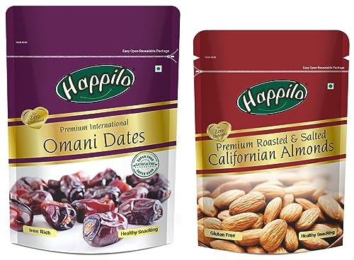 Happilo Premium International Omani Dates 250gHappily has travelled the world to get the finest gourmet dry fruits dried fruits nuts berries and dates 100 percent natural and authentic. Indulge into the gourmet and grocery world of Happily with awesome natural nuts and dry fruits along with the unique dry fruit mixes fusions and flavoured dry fruits healthy seeds and dried berries specially crafted for your taste and health. Happily dry fruit gift boxes and festive dry fruits and nuts gift pack brings health happiness and love to gift to your colleagues friends and family. We bring you the taste and health together in single pack in the finest of packing packed in an art of the state facility certified by all majors like fssai iso. Every Happily pack is a perfect dry fruits gift for every festive occasion.Happilo Premium Californian Roasted and Salted Almonds 200gWe bring you the taste and health together in single pack in the finest of packing packed in an art of the state facility certified by all majors like FSSAI ISO etc. Every Happilo Pack is a Perfect dry fruits gift for every festive Occasion.