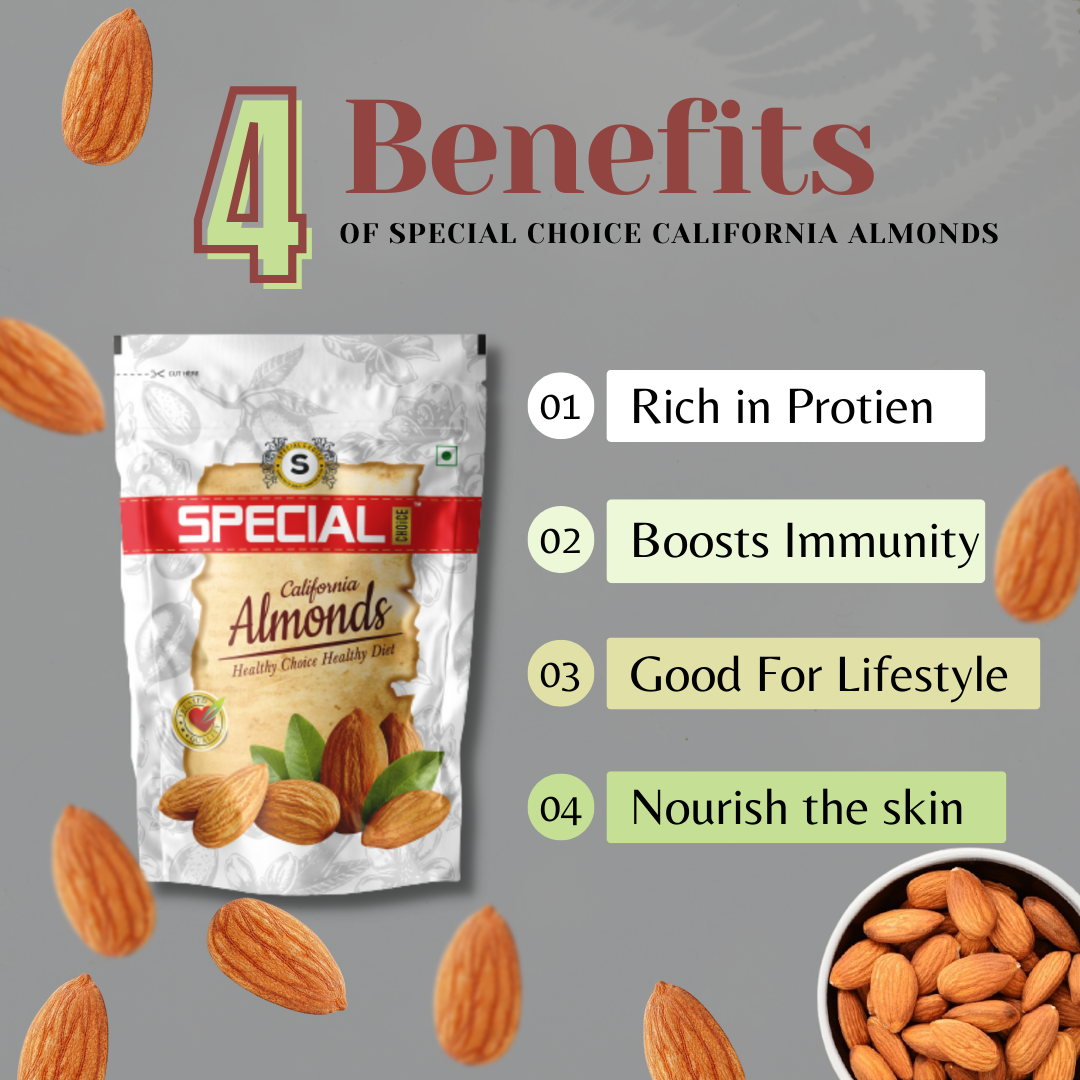 Almonds are a rich and delicious snack, and they can help you a healthy life. They provide the body with essential nutrients such as protein, fiber, vitamins. Special Choice Dry Fruits are an extremely fundamental piece of our eating routine as it contains an enormous number of supplements. Special Choice is providing you the Premium Dryfruits with Great Offers and Discounts.