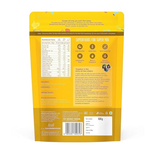 Yogabar California Almonds 500g Value Pack| 100% Premium California Dried Almonds |Badam Giri Nuts & Dry Fruits| Rich in Fiber vitamin E Magnesium Calcium & Boost Immunity| Healthy Badami Snacks Yogabar Cashews 500g| 100% Natural & Premium Whole Organic Cashew Nuts| King Size Crunchy Kaju Nuts| Premium Nuts & Dry Fruits| Rich in Fibre Vitamin E K B6 & Boosts Immunity| Healthy Snacks