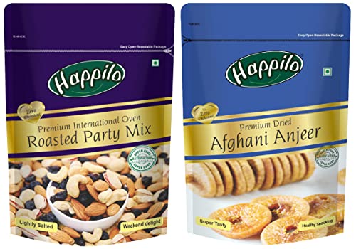 Happilo Premium Afghani AnjeerDried200gAfghani anjeer known for their creamy sweet and indulgent taste- They are also packed with nutritional goodness making them one of the healthiest dried fruit. Eating these amazing snack can keep the hunger pangs at bay.Happilo Premium International Salted Partymix 200g Dry FruitsConfused of which nuts to take in your diet? Looking for premium mixed nuts that are just slightly salted? These are for you! Switch to Happilo Salted Nutmix with ultra healthy combination of dry fruits which give you your daily intake of nutrients. Time to be happy lovely and healthy.