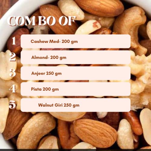 Healthy Master Dry Fruit Combo - 1300 gm (Banyan Grp Cashew Med- 200 gm Regular Almond- 200 gm Afghanie Anjeer 250 gm California Pista 200 gm Walnut Giri 250 gm Indian Gold Kismis 200 gm)