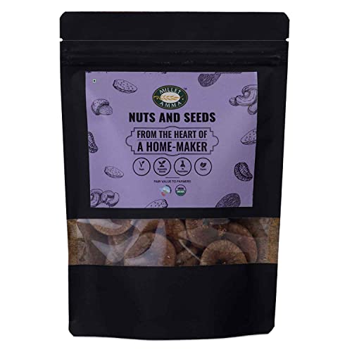 Millet Amma's Organic Dry Fig- This yummy and healthy Organic Dry Figs is a flavourful and nutritious snack to chew on at any time of the day. Dry figs are an excellent source of dietary fibres. It is a wealth of necessary minerlike Potassium Iron and Calcium. It is also rich in Antiand Complex Carbohydrates that overall health. You can eat these chewy delicious figs after your mebake with them or even use them to make protein bars and make your favourite recipes even more tasty. Enjoy these yummy yummy Organic Dry Figs with your friends and family with love from the of a home-homemaker. Fig or Anjeer as it is known in India is a small pear or bell-shaped flowering plant that belongs to the mulberry family and scientifically termed as Ficus carcia. The fruit is a native of the Middle East Asia Turkey and also widely cultivated commercially in the USA and S. In India fig is commercially grown in Maharashtra Gujarat Uttar Pradesh Karnataka and Coimbatore. Figs are extremely sweet fruits with several crunchy seeds. These can be consumed fresh or dried and in fact dried ones are available all through the year. As the fruit is dense in natural sugars it is known as nature's candy. It is available in various colours ranging from purple red green and golden. Fig is known as Atti Pazham in Tamil Athi Pallu in Telugu Atti Pazham in Malayalam and Gulur or Anjeer in Hindi. As per the study published in the American Journal Of Nutrition dried fig is highly valued for its umpteen amount of antipolyphenols fibre and other vital nutrients which should be included as a healthy snack in your daily diet.