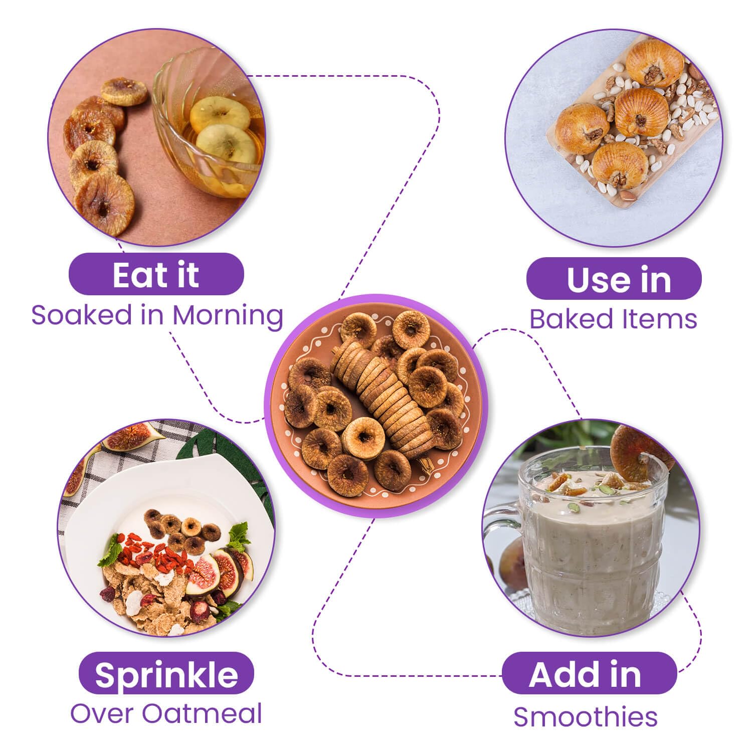 • Delight in the rich natural sweetness and chewy texture of these dried figs.