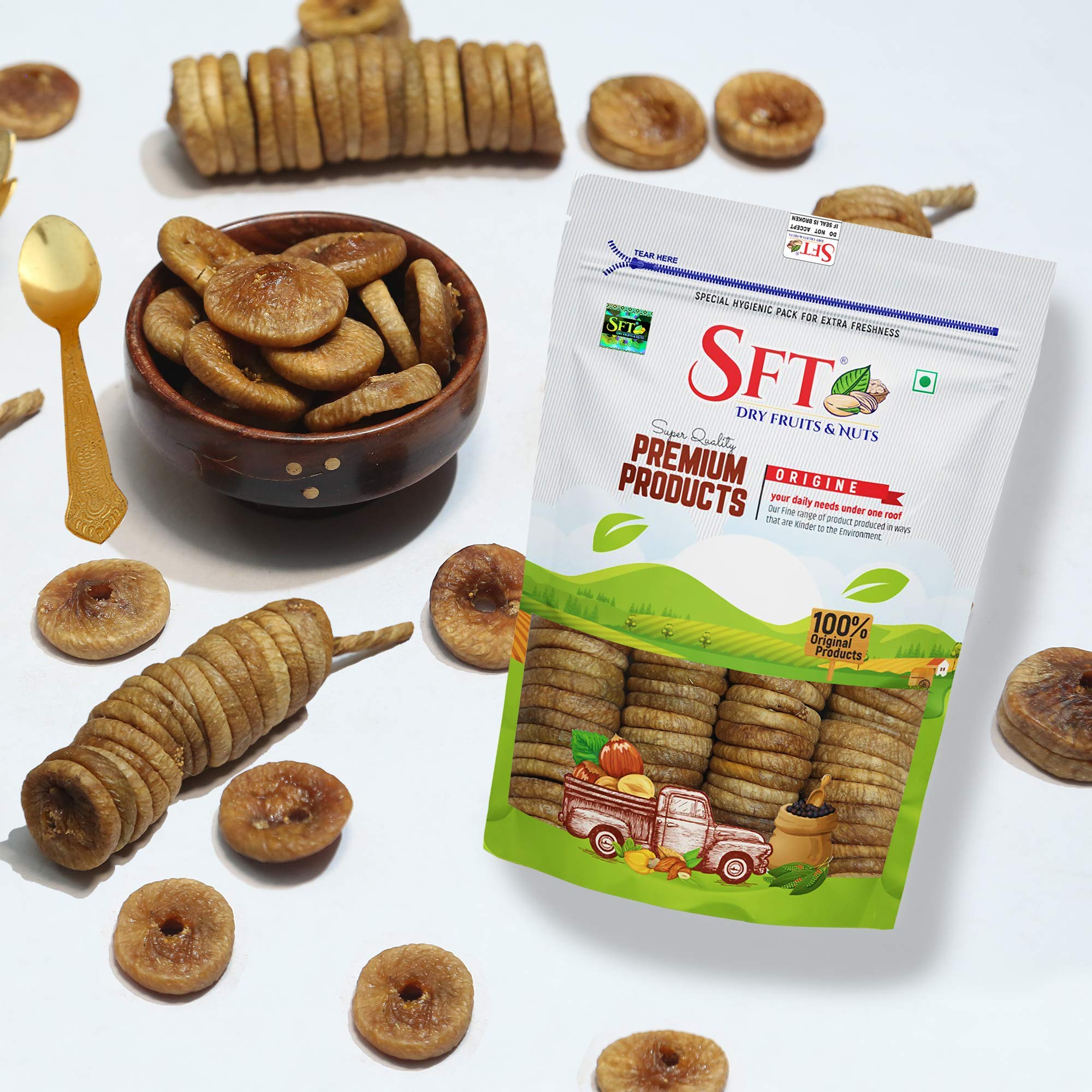 SFT believes that our reputation must be based on the quality of our products. We have travelled across the country to handpick the quality products at the best possible rates. SFT have been in the market for the past 22 years and we have tied up with all major offline retail majors. Our products are subjected to rigorous quality control procedures throughout the proment and packaging processes. It is our constant endeavor to provide widest possible range to consumer and now have an ever expanding range of selections across dry fruits spices and nuts. We maintain great taste and guaranteed quality throughout the year and our products are sure to be your new favourites after your first purchase. SFT figs grow on the ficus tree (ficus carica) which is a member of the mulberry family. They are unique in that they have an opening called the "ostiole" Or "eye" which is not connected to the tree but which helps the fruit's development aiding it in communication with the environment.