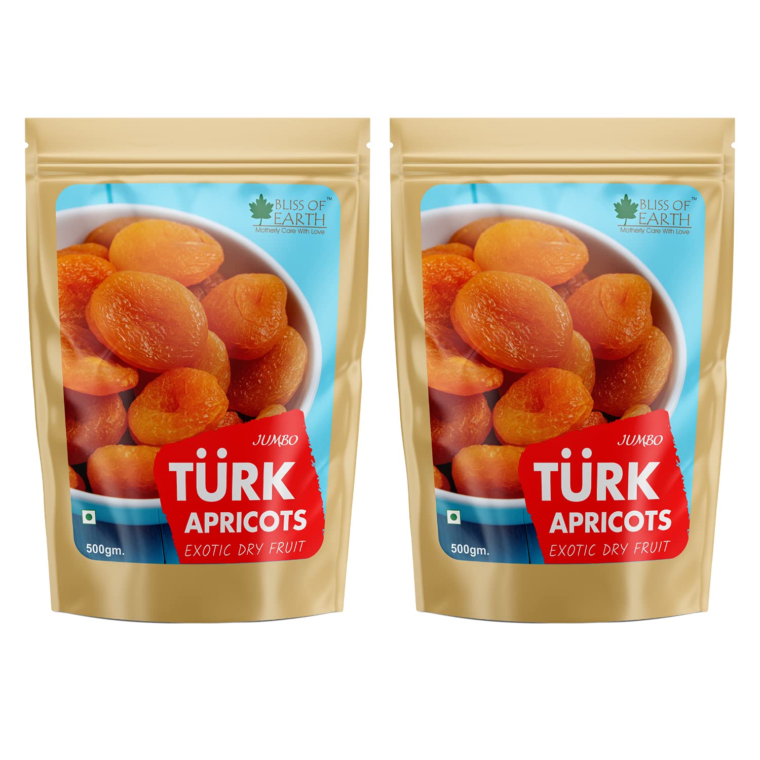 Bliss of Earth Exotic Jumbo Turkish Apricots 2x500gm, Vacuum Seal For Extra Freshness Apricots (Pack of 2)
