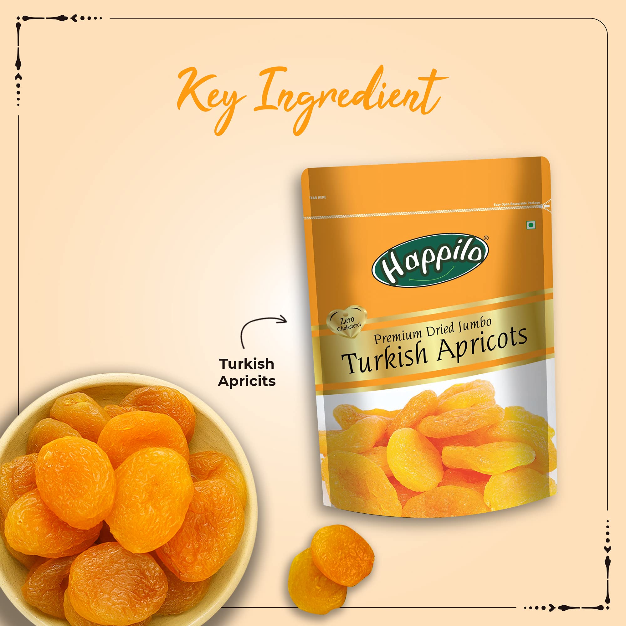 Happilo Premium Turkish Apricots 200gOur Jumbo dried apricots are plump moist chewy and vibrant in flavour! Larger apricots like this variety tend to be sweeter and more delicious.Happilo Premium Dried Californian Blueberries 150gBlueberries are slightly sweetened and ideal for snacking mixing in cereals or adding to cakes and muffins. Heart Healthy plump and sweet taste of our dried blueberries will leave your taste buds in paradise.