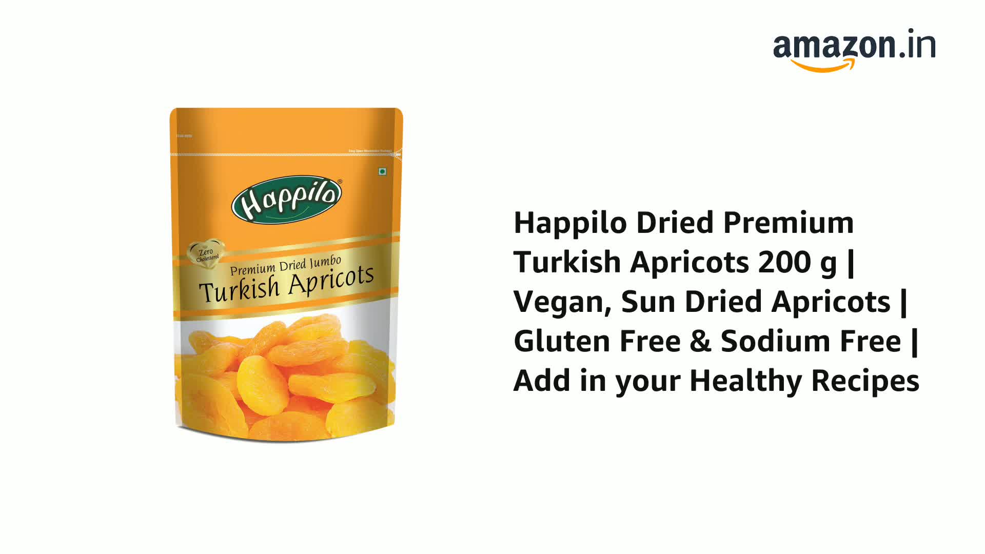 Happilo has travelled the world to get the finest gourmet dry fruits. They are one of the most nutritious dried fruits in the world they're a yummy healthy snack. Great for Snacking adding to Cereal Cooking and Baking. High Antioxidants Dietary Fiber No Gluten Non GMO Zero Trans Fat & Zero Cholesterol. Daily need products for a healthy and energetic life. Happilo Zip Lock Pouch with airtight seal to ensure the product is protected and fresh. Quality assured - Happilo products are rigorously tested against the industry's standards.