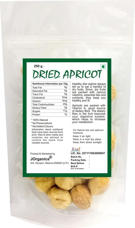 JOrganics Apricot 250gm Dry Fruits Nuts & Seeds | Healthy Natural Snack | Rich in Protein Fiber & Antioxidants | Boost Energy & Immunity | 100% Pure & Fresh