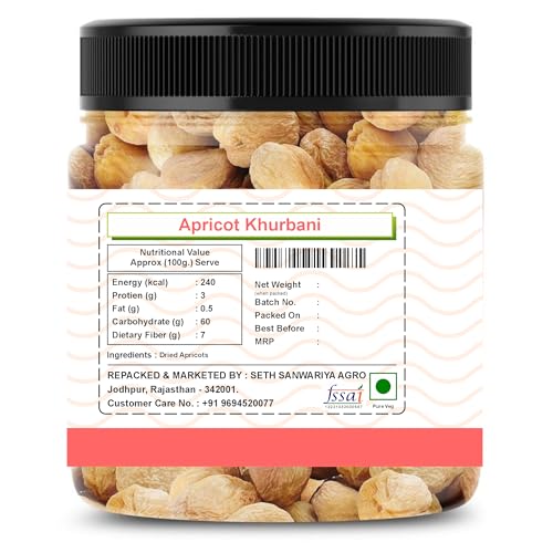 Discover the natural goodness of Seasonal Kart Apricot Khurbani a premium selection of dried apricots packed with nutritional benefits. Each 100g serving delivers 240 kcal of energy along with 7g of dietary fibre that aids in maintaining healthy digestion and regular bowel movements. These golden-hued dried apricots are carefully processed to preserve their natural sweetness and nutritional value containing 3g of protein 60g of carbohydrates and just 0.5g of fat per serving. The convenient jar packaging helps maintain freshness and makes it easy to store and serve. Perfect for healthy snacking adding to breakfast cereals or incorporating into your favourite recipes. These traditional dry fruits from Rajasthan offer a delightful combination of sweet and tangy flavours while providing essential nutrients for your daily diet. Enjoy them straight from the jar or use them to enhance your culinary creations.
