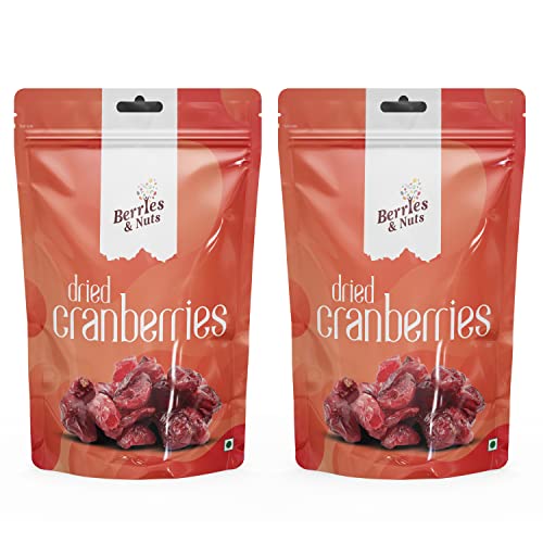 Berries And Nuts Fresh Cranberries 400 Grams Pouch|Dehydrated Cranberries, Antioxidant Rich, Immunity Booster|2 Pack Of 200 Grams