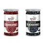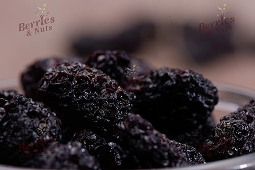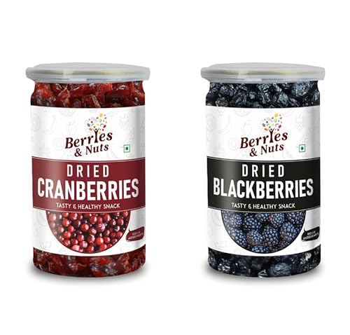 Cranberries are a red tart berry that can be blended into smoothies made into juices or turned into baked goods. Dried cranberries are literally just cranberries that have had their water content removed. In general one cup of fresh fruit becomes a quarter cup of dried fruit. This means that a quarter cup is a serving size for dried fruit like cranberry. Dried blackberries are a satisfying snack rich in both soluble and insoluble fiber. Research suggests that eating foods rich in soluble fiber can help lower cholesterol and regulate blood sugar levels. The insoluble fiber content of dried blackberries supports the digestive system and prevents overeating.